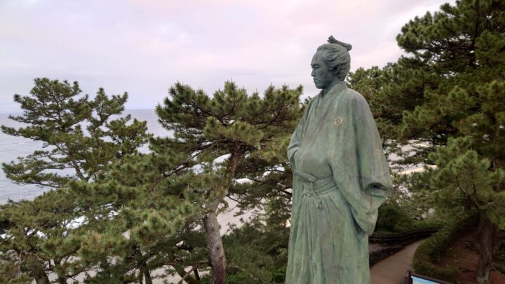 太平洋を臨む坂本龍馬象で有名な海岸ですね。