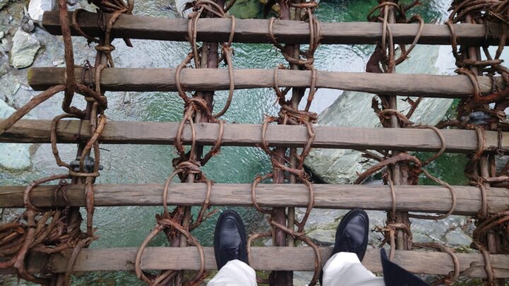 ワイヤーなどを使わず葛で作られた橋で、日本三大奇橋の一つらしいです。