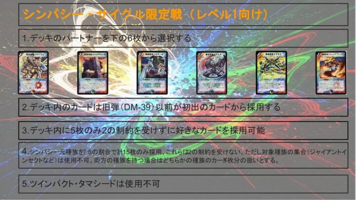 ーーなるほど、いいかげんさん達はDMEDHの中でも更に縛りを強くするフォーマットでも遊ばれているとも聞きました。